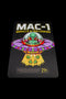 The mat features a colorful Miracle Alien Cookies (MAC-1) design with an alien spaced out of its mind inside its spaceship that’s hurtling through space.