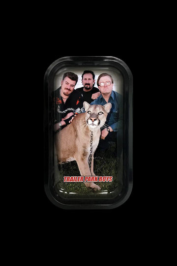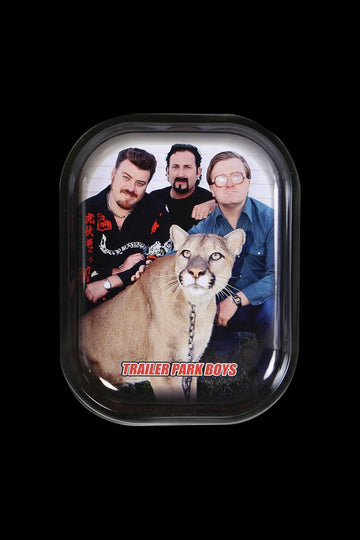 This sturdy & durable aluminum rolling tray is perfect for your rolling activities and for holding your stash safely. It features your favorite trailer park trio with a very big kitty cat. This tray is made just right with rugged metal construction, high sides, and smooth edges. It won't bend, warp, or fade.