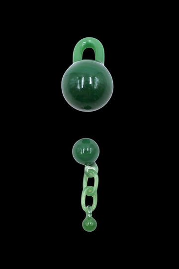 This Two Piece Terp Chain Slurper Set is an essential tool for terp slurper banger users. The 2 piece slurper set includes a 22mm cap marble and a 13mm valve cap with an attached hanging chain bearing a 6mm quartz pearl at the end. The chain and pearl will spin to evenly distribute your concentrates for an enhanced vaporizing experience.