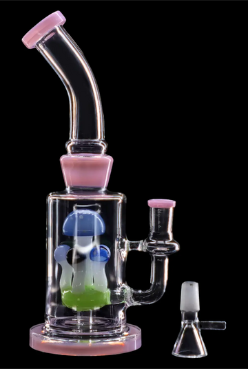 The Multi-Mushroom Perc Water Pipe is a compact yet artistic piece that combines whimsical design with advanced functionality. Standing at 9 inches tall, this water pipe features a mushroom-shaped percolator that provide exceptional filtration while adding a touch of charm to your collection. Perfect for both daily use and display, it offers a smooth and enjoyable smoking experience.