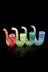 4" (Measured diagonally) wrap-and-rake sherlock boro glass handpipe. Clear tubing is covered with colored glass, fumed with pure silver, and raked with clear glass to create this timeless pattern. Did you know it's the same technique used in decorating a cake or your cappuccino? Sherlock pipes are better because if you measure the distance the smoke travels from the ignition source, your smoke travels 3-4 times it does in a standard spoon hand pipe. This means cooler smoke! Yah! You're welcome! Science!
